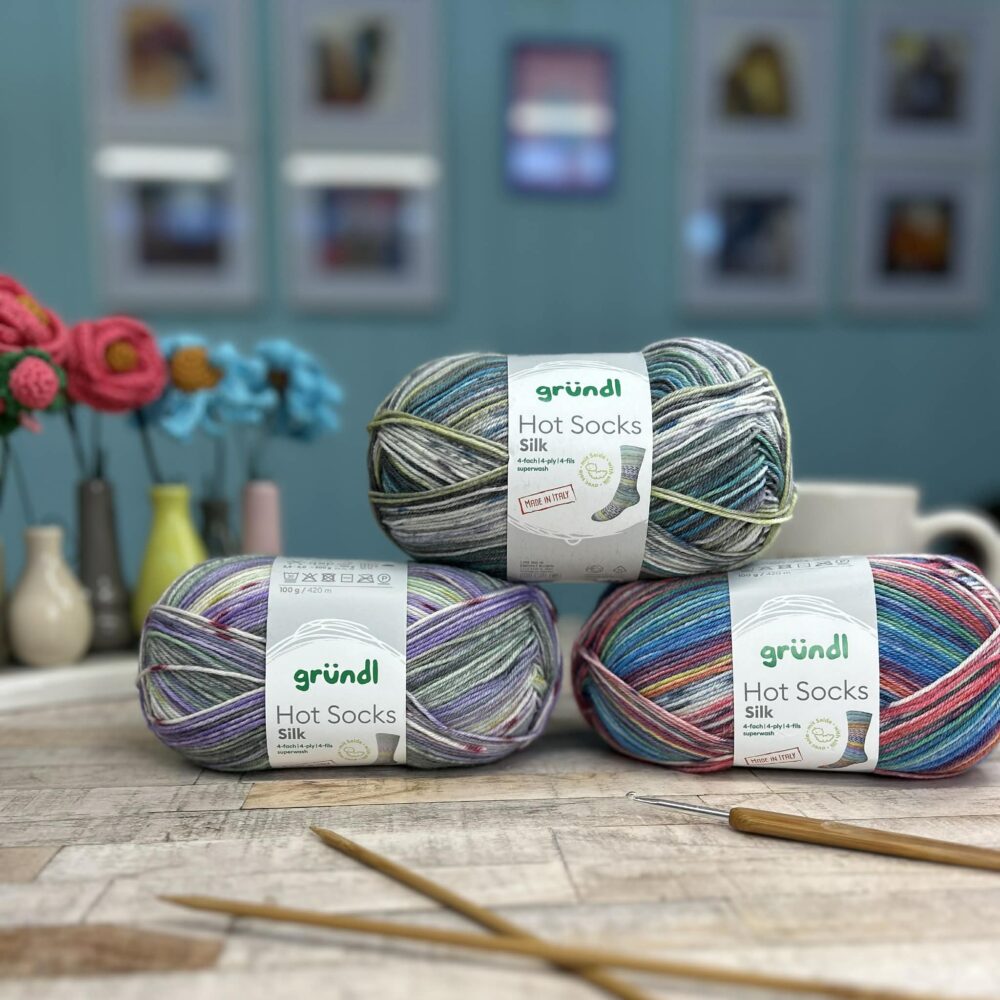 Exceptionally soft, luxurious sock yarn, made in Italy with 20% silk soft and supple comfortable feel thanks to merino wool warming, highly absorbent durable due to the polyamide content color patterns emerge directly from the ball, without complicated color changes or lots of weaving in ends 6 flattering color combinations with smooth color transitions suitable for knitting machines Uses – Knitting ideas elegant sock creations delicate shawls, soft arm warmers, lightweight hat designs